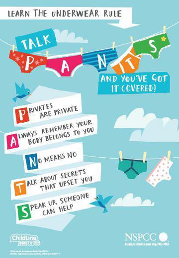 We teach our children about the NSPCC Pants Rule which outlines that some parts of our body are private and that we have the right to say ‘no.’