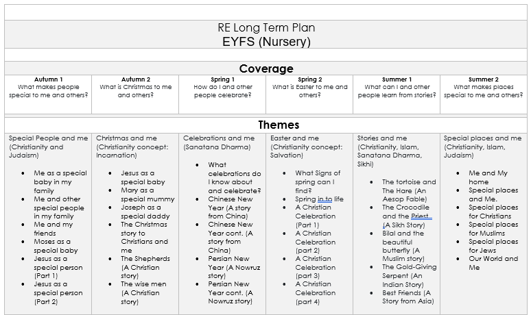 We use the Derbyshire’s curriculum which aims for children to “participate in an on-going search for wisdom, through exploring questions raised by human experience and answers offered by the religions and beliefs of the people of Derbyshire and the wider community, so as to promote their personal development.”