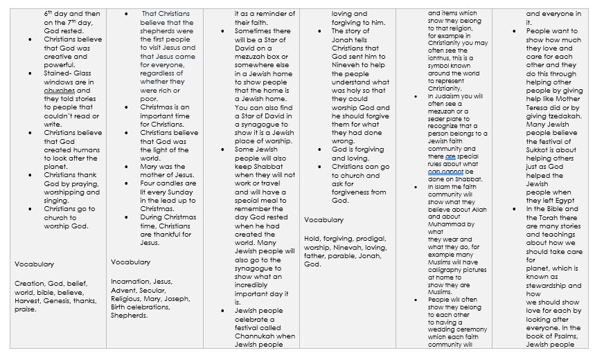 Through Religious Education, pupils develop their knowledge of the world faiths, and their understanding and awareness of the beliefs, values and traditions of other individuals, societies, communities, and cultures. We encourage our pupils to ask questions about the world and to reflect on their own beliefs, values, and experiences. Our Religious Education curriculum is enhanced further with trips to places of worship in our local area and hosting workshops, which teach the children about different celebrations within religions such as Diwali and Chinese New Year.